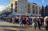 Кількасот людей сформували колону і вирушили центральними вулицями міста, вітаючи перехожих зі святом народження Христа.