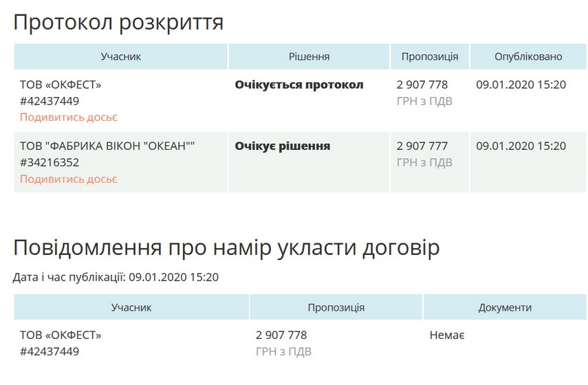 На аукціон подали заяви 15 учасників, максимальна початкова заявка була в учасника №14 – 2 млн 522 тис. 003 грн. За результатами першого раунду в учасника №14 також була найбільша ціна – 2 млн 543 тис. 778 грн, в другому раунді він теж показав максимальну ціну – 2 млн 777 тис. 778 грн.