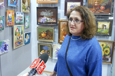 Далі демонструє картини Алли Юзепольської, які зараз можна придбати в артцентрі.