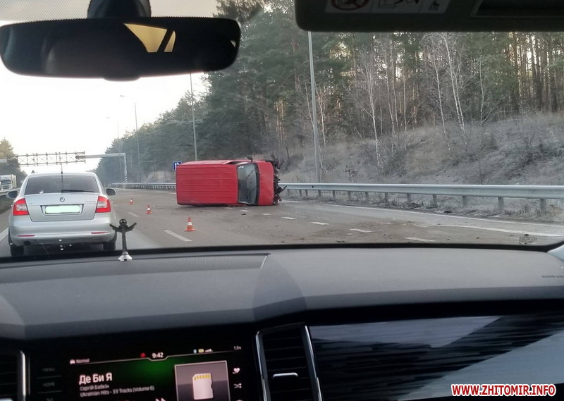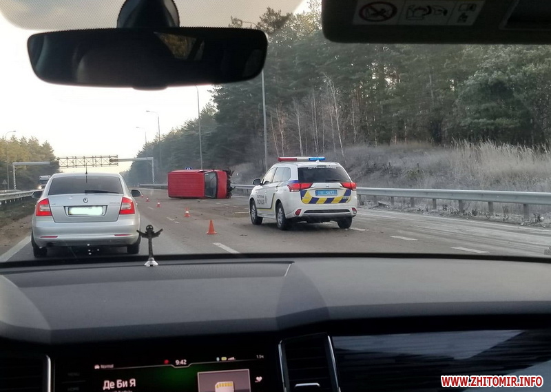 На трасі Київ – Чоп у Житомирській області перевернувся мікроавтобус.