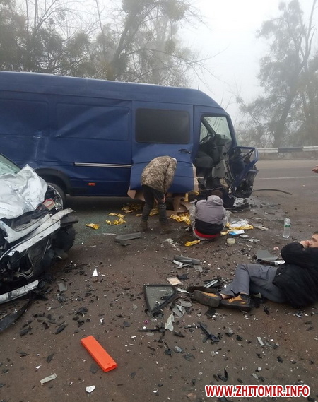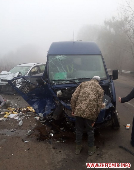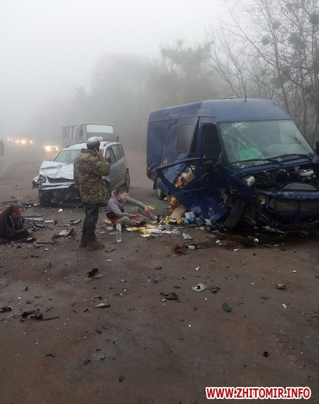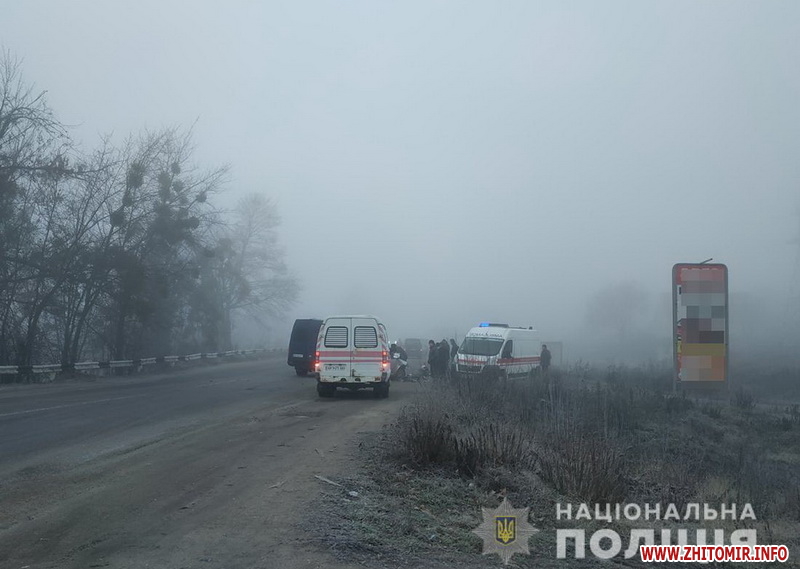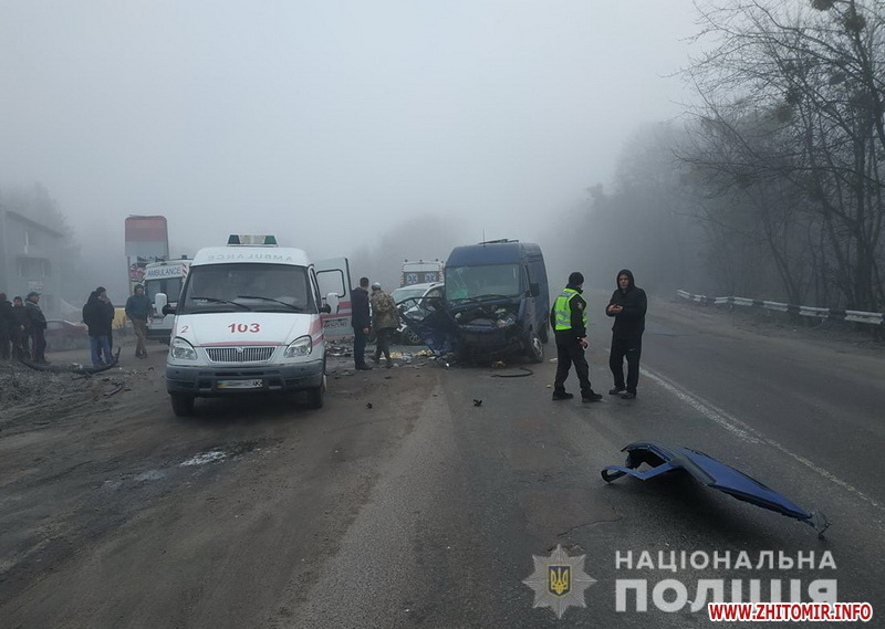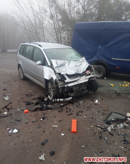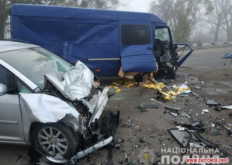 «Попередньо, водій автомобіля Volkswagen LT, 28-річний житомирянин, рухаючись у напрямку м. Коростишева, не впорався з керуванням та виїхав на смугу зустрічного руху, де допустив лобове зіткнення з автомобілем Volkswagen Touran під керуванням 35-річного жителя Коростишівського району», – йдеться у повідомленні.