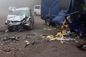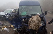 У Житомирській області бус виїхав на зустрічну смугу та «влобову» зіткнувся з компактвеном, внаслідок чого в лікарню потрапили четверо людей.