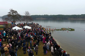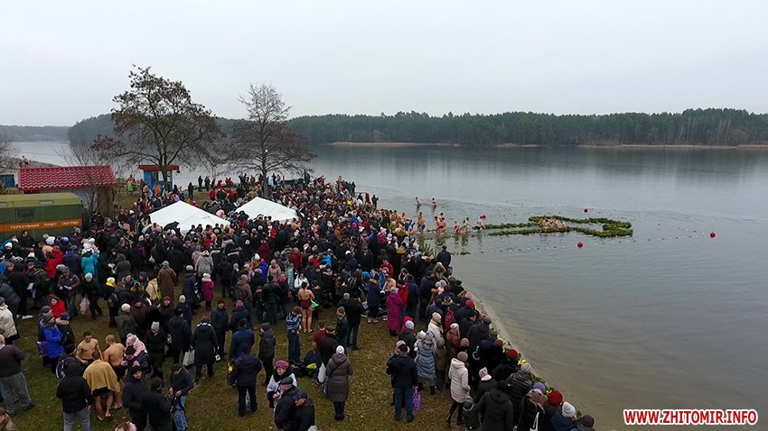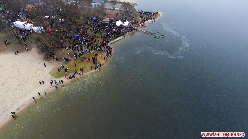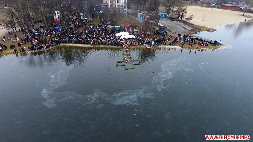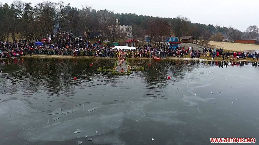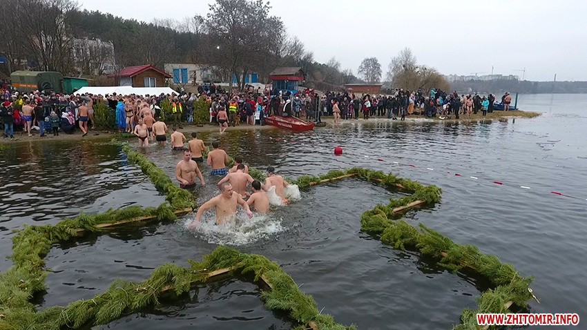З самого ранку 19 січня у житомирському гідропарку містяни почали занурюватися у крижану воду не чекаючи офіційного освячення. О 12:30 священники освятили воду в Тетереві й сотні людей прийняли благодатну купіль.