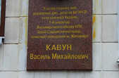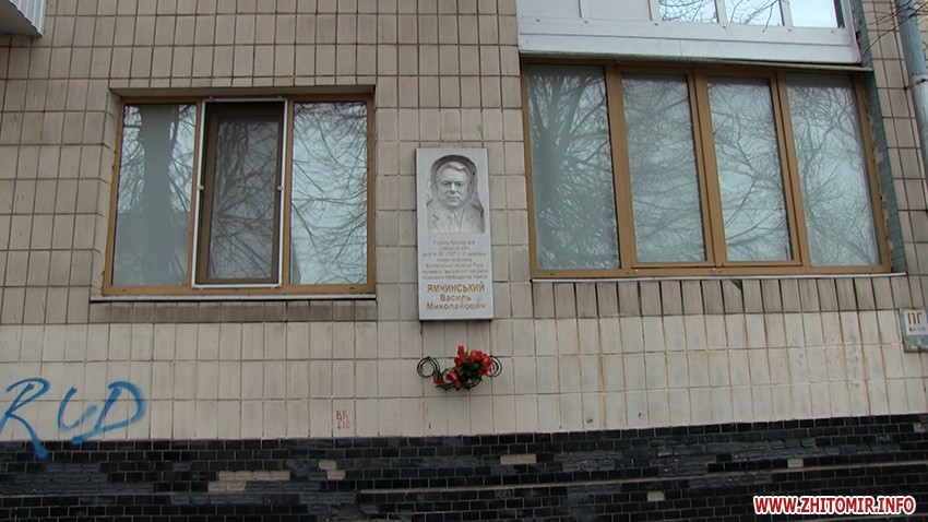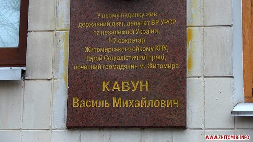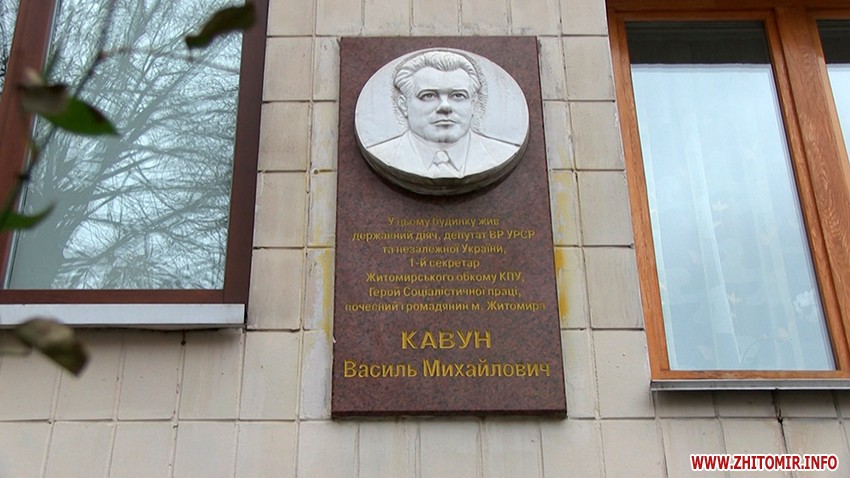 Як повідомляв Житомир.info, в травні 2011 року на будинку по вулиці Чорновола було встановлено меморіальну дошку Василю Кавуну, колишньому першому секретарю Житомирського обкому КПУ. 7 листопада 2011 року на цьому ж будинку урочисто відкрили меморіальну дошку колишньому голові виконкому Житомирської обласної ради Василю Ямчинському. 19 лютого 2016 року мер Сергій Сухомлин підписав розпорядження про декомунізацію, де, зокрема, йшлося про демонтаж 19 дошок і пам'ятних знаків. Тоді ж він пояснював, що Василь Кавун під дію закону не потрапляє. Після підписання розпорядження житомирські свободівці звернуться до міської влади, щоб отримати дозвіл на демонтаж погруддя колишнього комуністичного парткерівника та першого секретаря Житомирського обкому КПУ Василя Кавуна. 13 липня 2016 року був оприлюднений проєкт рішення міськвиконкому про демонтаж дошок Ямчинському та Кавуну, демонтаж погруддя Кавуна та зміну назви школи №22.