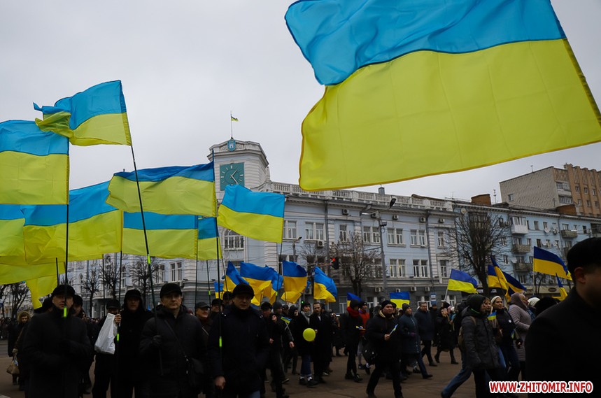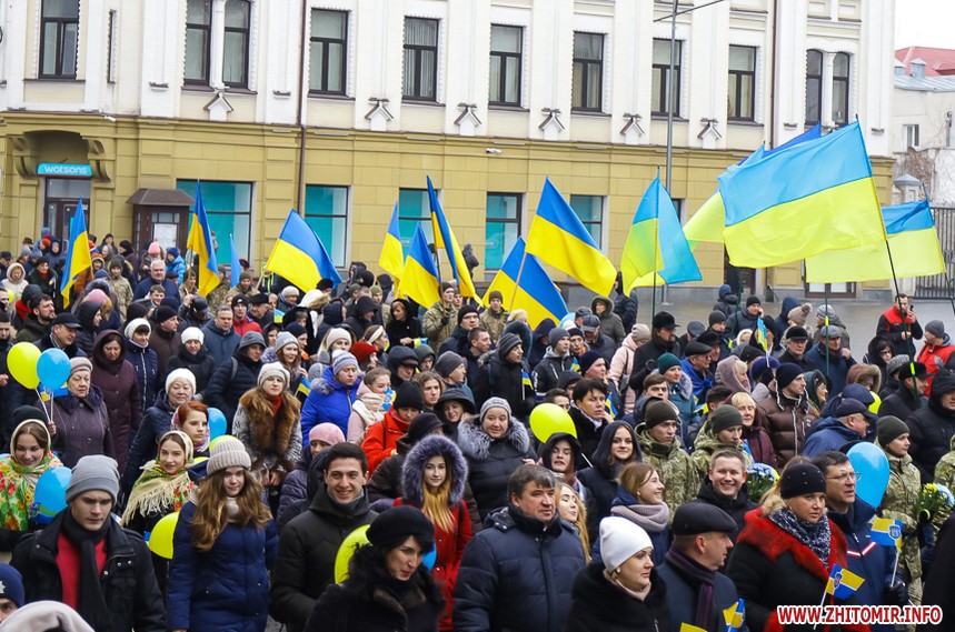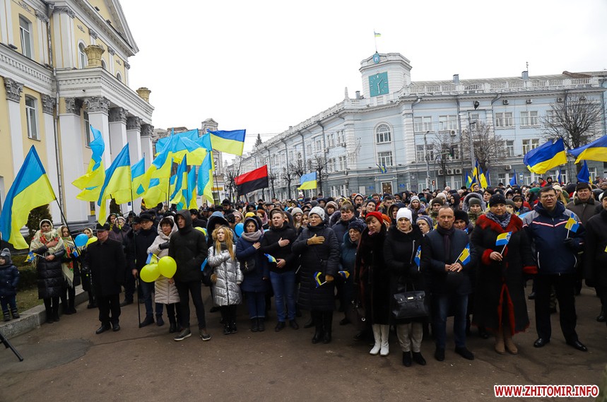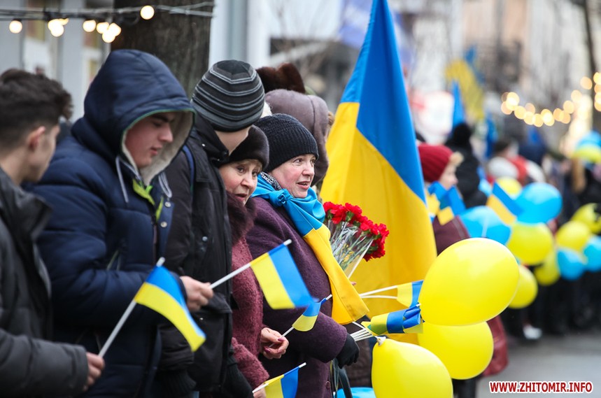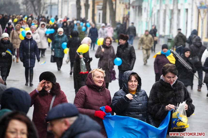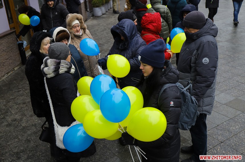 Нагадаємо, 22 січня на Михайлівській зібралися житомиряни з жовтими і блакитними кульками та національними прапорами.