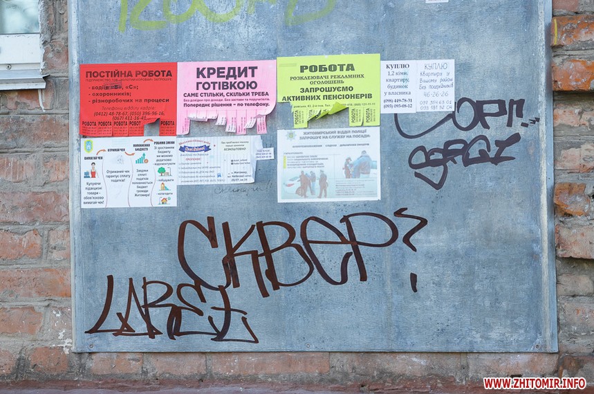 На багатьох житомирських вулицях стіни будівель та паркани – ніби полотна для чиєїсь «творчості»: обмальовані та обписані.