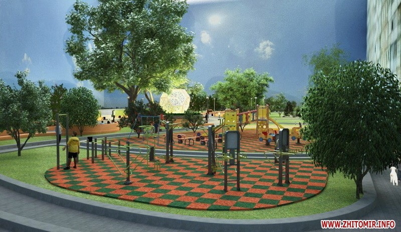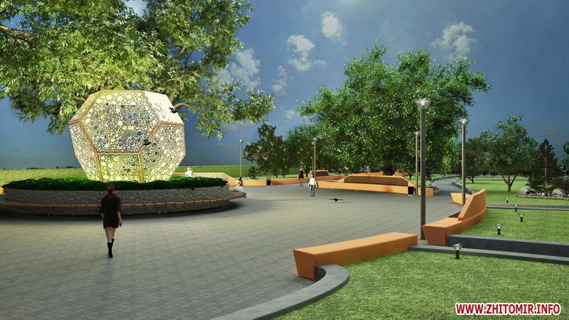 Однак, в ілюстраціях до проєкту зображено, що у сквері, окрім охайних доріжок з бруківки, лавочок та освітлення ще мають бути спортивний майданчик та велика інсталяція – многогранник, що світиться. Роботи по реконструкції скверу мали бути завершені до 30 вересня 2019 року, вартість реалізації – 1,4 млн грн, виконавець робіт – житомирське ТОВ «Комфорт-Буд».