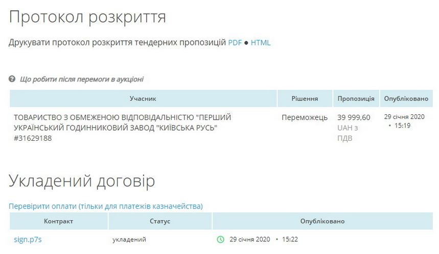 Про це стало відомо 29 січня з ресурсу ProZorro.