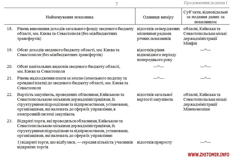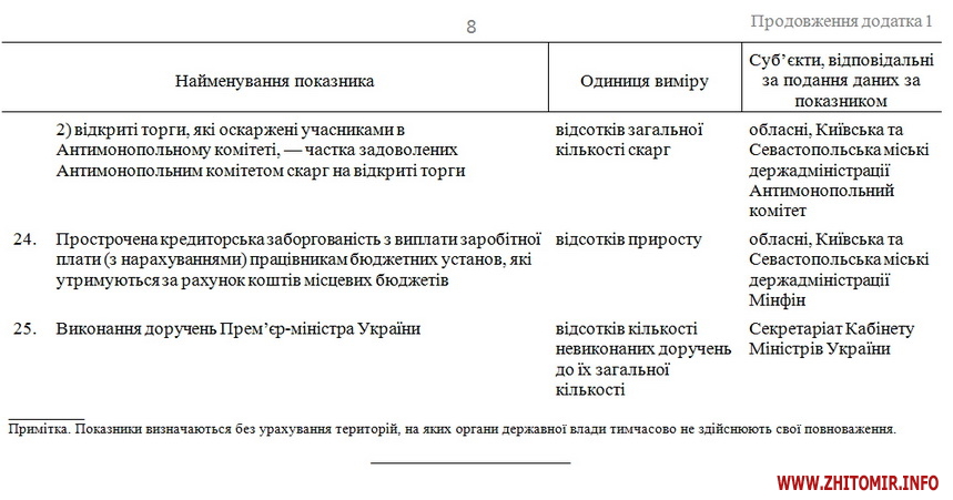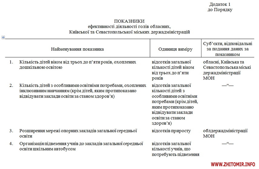 У додатку до постанови є 25 показників ефективності діяльності голів обласних (див. фото).