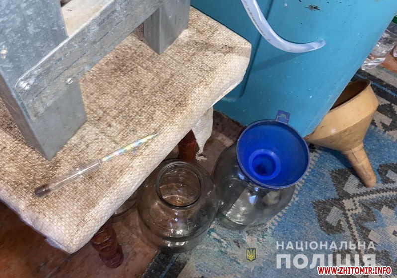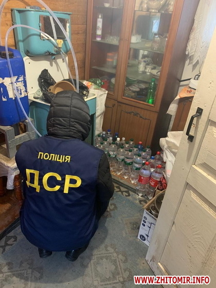 «Під час обшуків, у тому числі, за місцем здійснення протиправної діяльності з виготовлення алкогольної продукції в домоволодінні, вилучено обладнання та компоненти для незаконного виробництва алкогольних напоїв, а також близько однієї тонни готової продукції та спирту. Установлено, що мешканець Житомирської області, без відповідного офіційного дозволу та ліцензії, на території домоволодіння організував функціонування підпільного цеху з незаконного виробництва алкогольних напоїв, які у подальшому розповсюджувалися мешканцям області», - повідомили в прокуратурі.