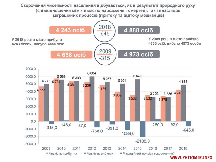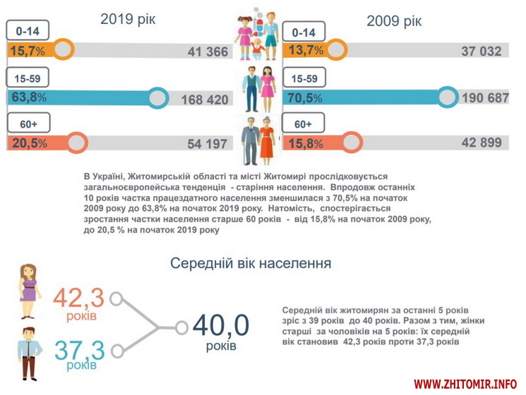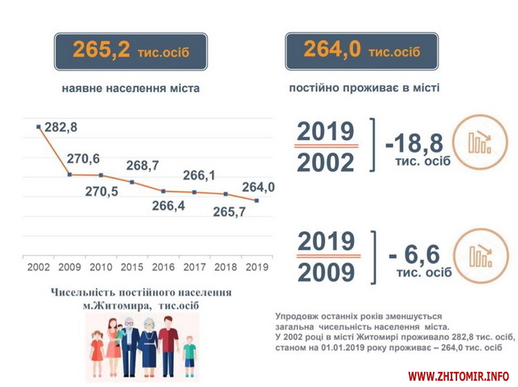 У департаменті економічного розвитку Житомирської міської ради підготували інфографіку про основні демографічні показники в Житомира за 10-15 років.