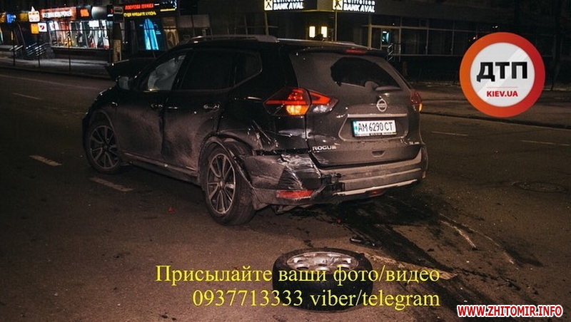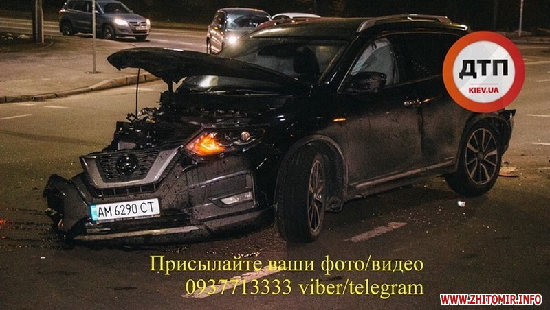 Окрім того, dtp.kiev.ua повідомляє про нічну ДТП на проспекті Перемоги за участі автомобіля Nissan на житомирських номерах "АМ".