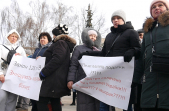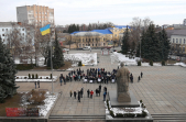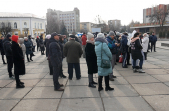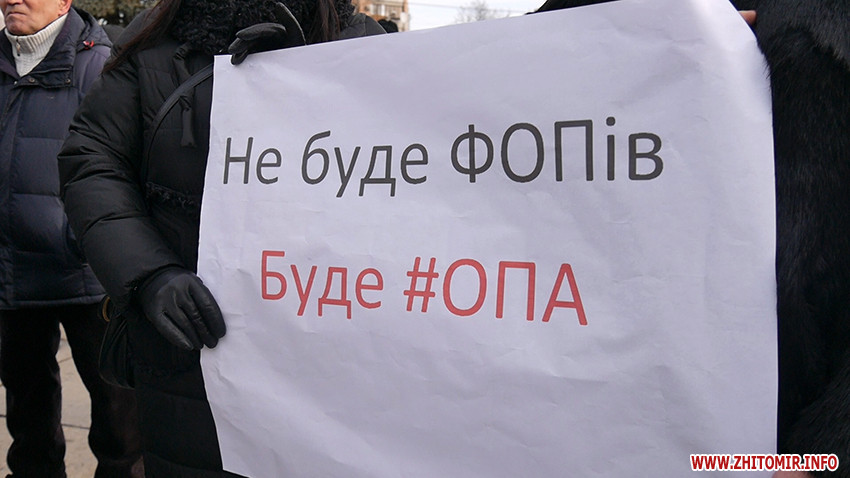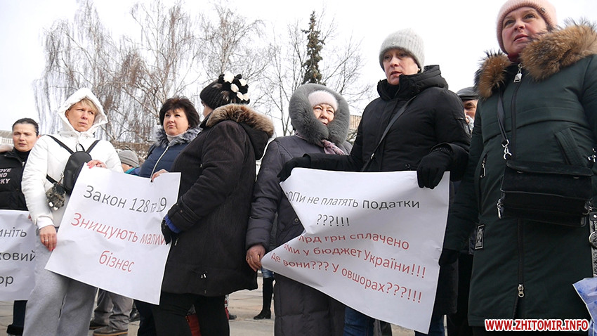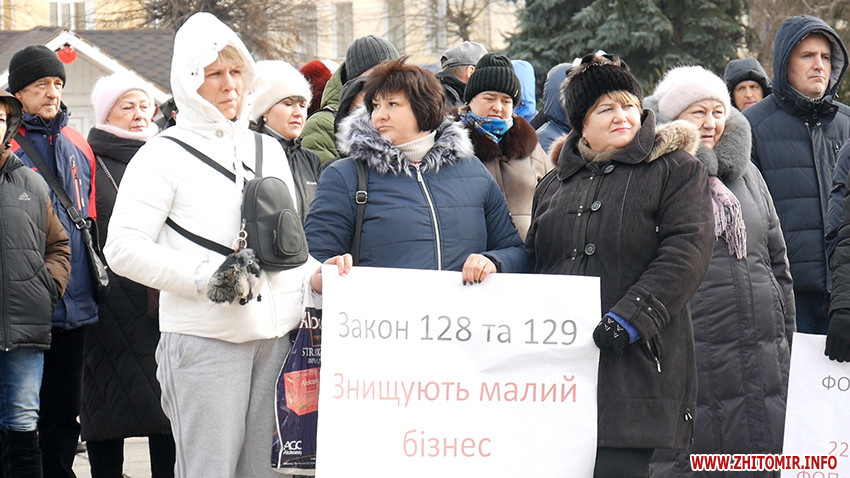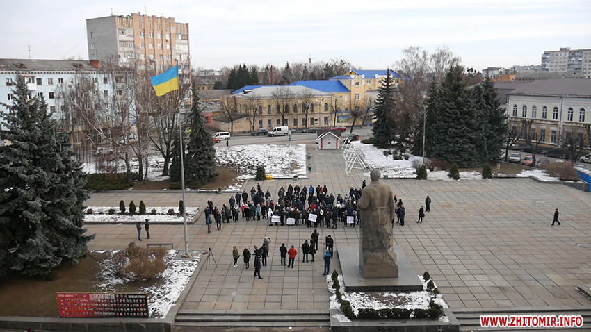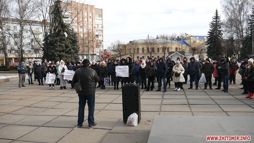 Близько сотні житомирян зранку 10 лютого влаштували акцію на майдані Корольова. Вкотре люди протестують проти введення касових апаратів для ФОПів.