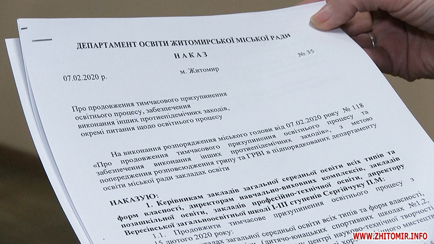 Як повідомляв Житомир.info, з 27 січня по 5 лютого 2020 року в школах та позашкільних навчальних закладах Житомира оголосили карантин. 5 лютого на засіданні комісії з ТБ та НС прийняли рішення продовжити карантин до 8 лютого (включно), бо захворюваність на грип і ГРВІ продовжувала зростати.