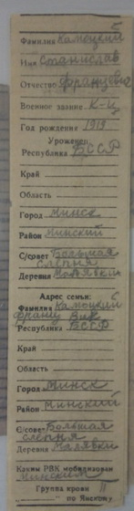 «У далекому 2004 році наша пошукова операція на чолі з Шмунєвським Павлом Павловичем під Малином підняла загиблого у липні 1941 року білоруса (а точніше, етнічного поляка) Камоцкого Станіслава Францовича, 1919 р. н., із с. Малявки Мінського району. В 2004 році знайти родичів не вдалося, і тому солдат 12.11.2004 був перепохований в братську могилу в м. Малин», – розповідають пошуківці.