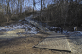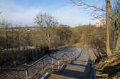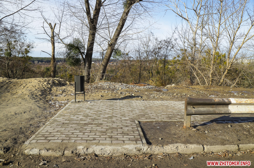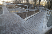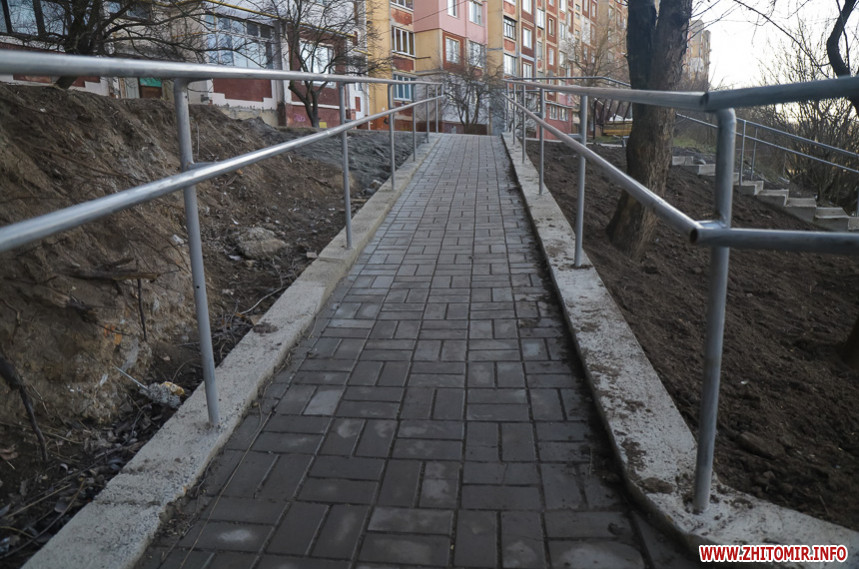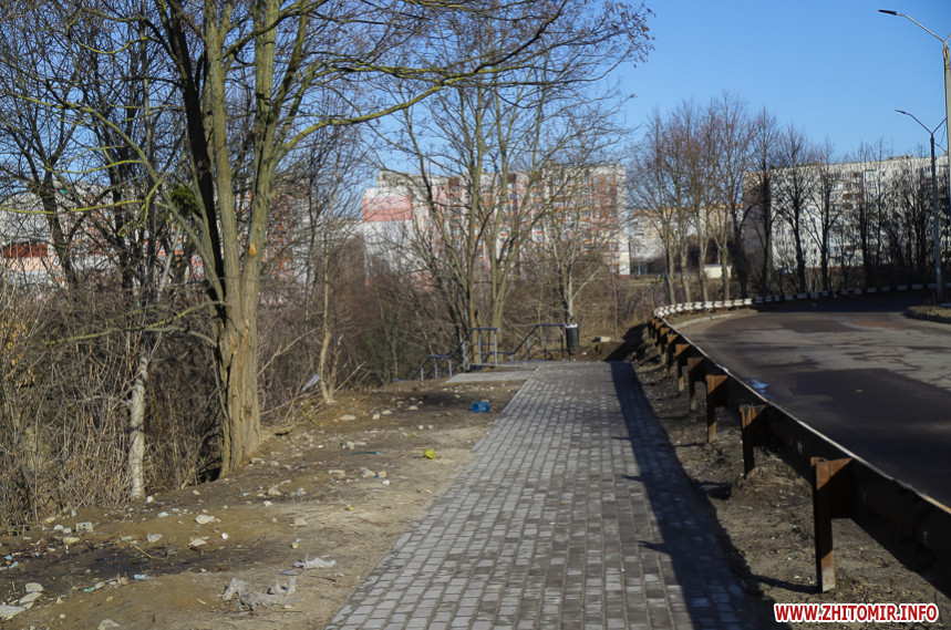 «Високі» бетонні сходи з сірими металевими перилами обабіч, лавки та сміттєві урни – такий вигляд нині має шлях від Бульвару Польського до набережної річки Кам'янка, який облаштовують в рамках реалізації проєкту бюджету участі. На якому етапі перебуває втілення проєкту «Каскадні сходи до річки Кам'янки», 11 лютого намагалася оцінити фотокореспондентка Житомир.info.