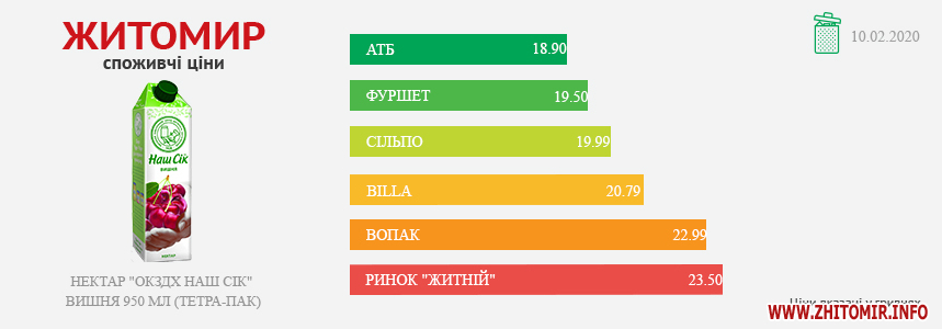 Моніторинг здійснено на основі інформації, отриманої за методом контрольної закупки 28.11.2025 р. у місцях продажу: АТБ, пр. Миру, 15а, Фора, вул. Київська, 106, Метро, вул. Ватутіна, 55в, Сільпо, вул. Житній ринок, 1