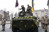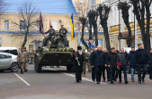 Кілька сотень містян у супроводі оркестру та бронетранспортера пройшли урочистою ходою від Будинку правосуддя до пам'ятного знаку «Чорний тюльпан» на Новому бульварі у 31-у річницю виведення військ з Афганістану та День вшанування учасників бойових дій на території інших держав.