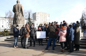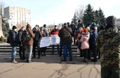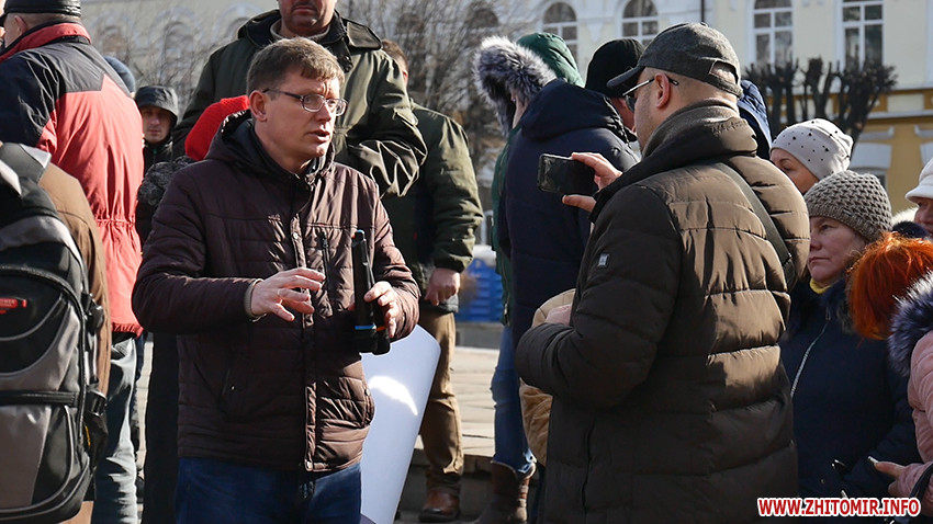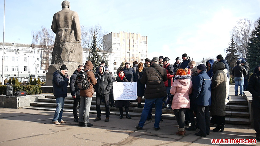Близько півсотні людей 17 лютого зібралися під будівлею Житомирської облдержадміністрації. У руках мітингувальників плакати з написами: «Бунечко, Федоренко, Чепурко, ви тут тимчасово, а нам тут жити», «Не змушуйте людей перекривати міжнародну трасу та залізницю».