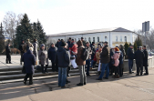 За словами мітингувальників, приїхали вони з Овруцького району з вимогою створити Гладковицьку ОТГ, адже так вигідніше для їхніх сіл.
