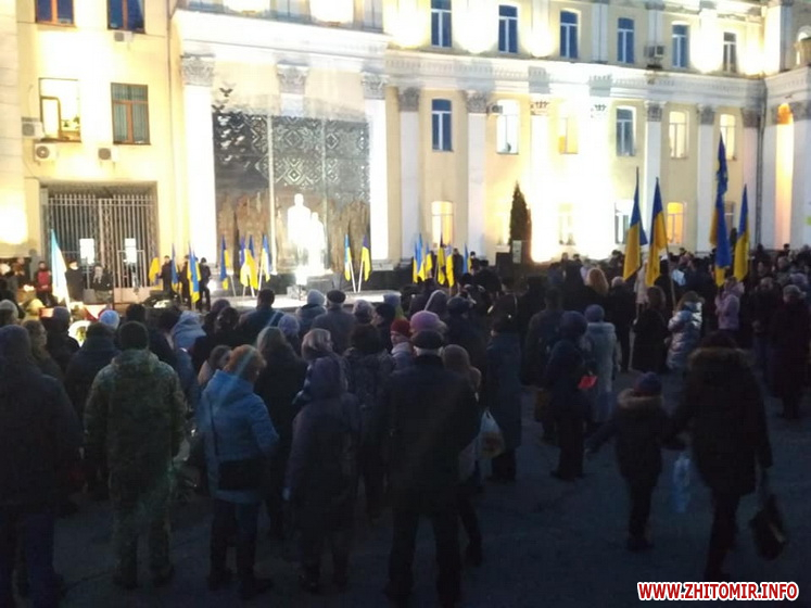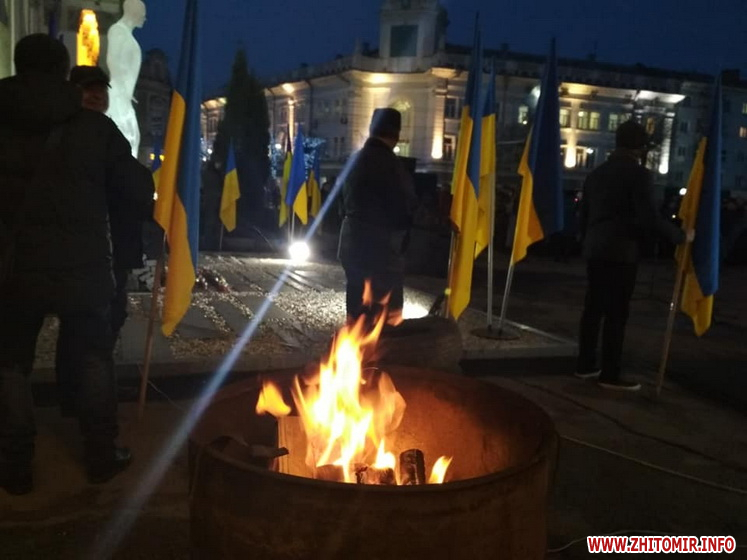 Наприкінці робочого дня 20 лютого на майдані Корольова у Житомирі розпочалося віче пам’яті та вшанування Героїв Небесної сотні.