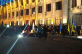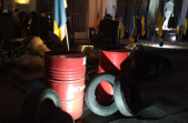 Задля реконструкції подій на Майдані у лютому 2014 року перед будівлею ОДА запалили вогнища у бочках – як символ місць для обігріву «майданівців».