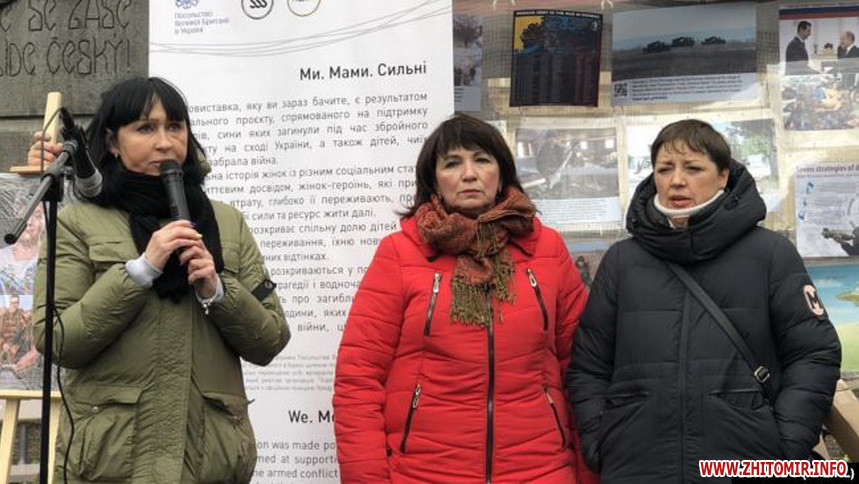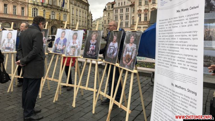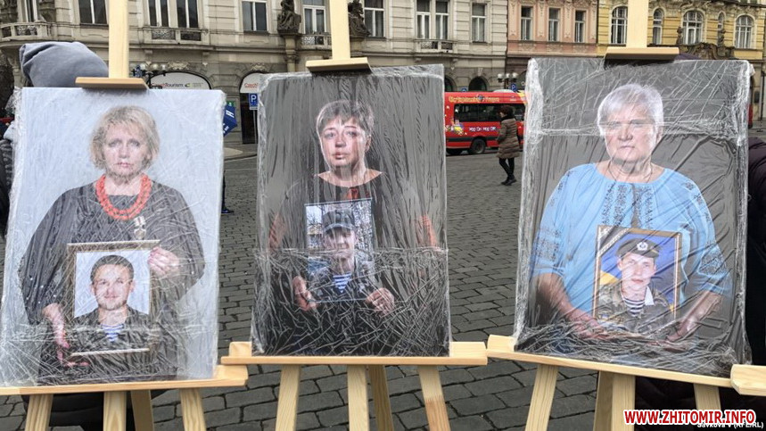 23 лютого у столиці Чехії Празі відбулась фотовиставка «Ми. Мами. Сильні» про жінок, які втратили своїх синів під час війни на Донбасі. На фото – житомирянки з портретами своїх загиблих синів.