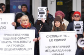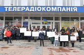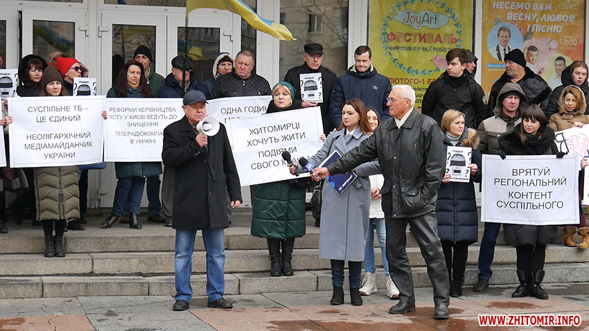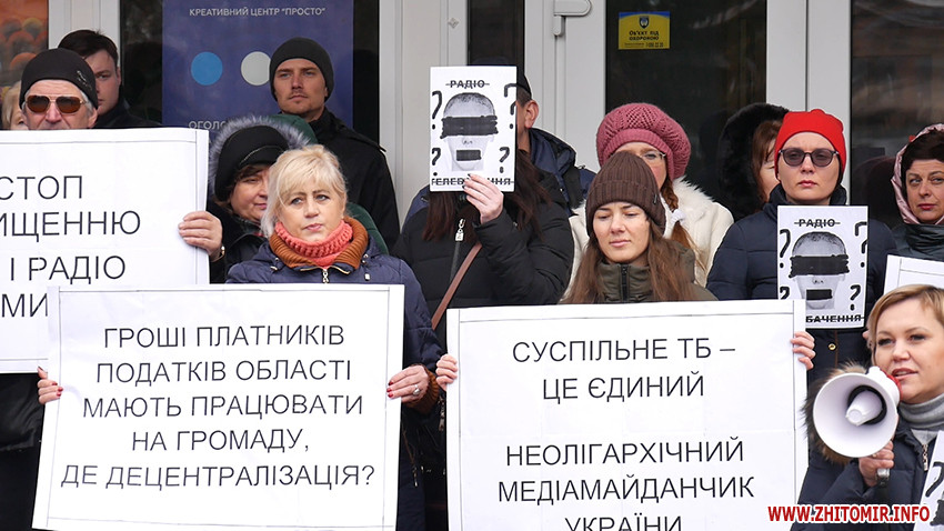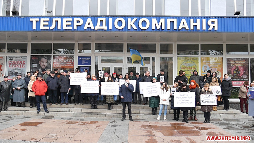 Працівники «UA:Житомир» 25 лютого влаштували протест під будівлею телецентру.