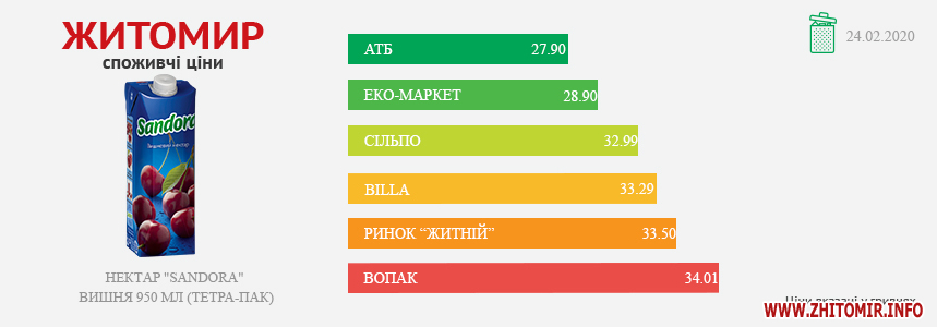 МОНІТОРИНГ ЗДІЙСНЕНО МЕТОДОМ КОНТРОЛЬНОЇ ЗАКУПІВЛІ, У МІСЦЯХ ПРОДАЖУ: AТБ, пр. Миру, 15 А, Ринок "Житній", майдан Житній ринок, Вопак, вул. Київська, 87, Сільпо, майдан Житній ринок, 1, Billa, пр. Миру, 15, ЕКО-маркет, вул. Мала Бердичівська, 2/7
