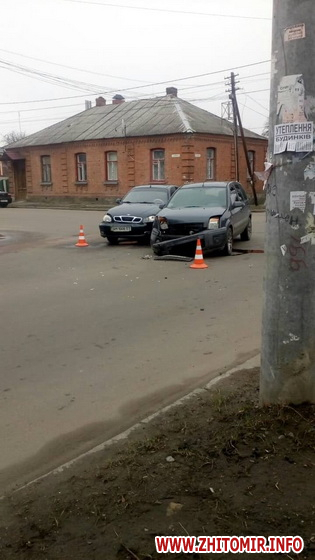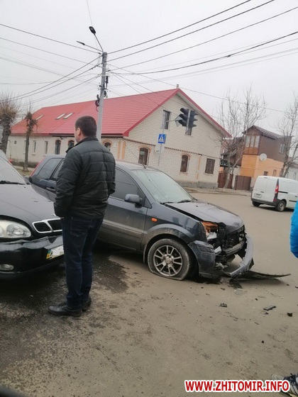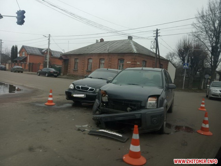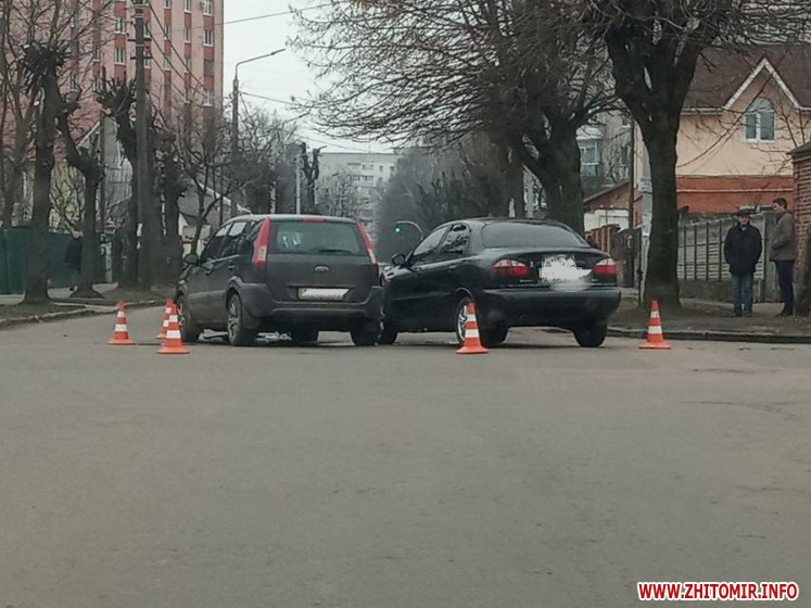 У Житомирі на перехресті вулиць Князів Острозький і Героїв Крут 4 березня зіштовхнулися Ford і Daewoo Lanos.