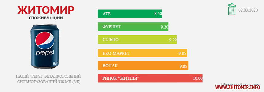 МОНІТОРИНГ ЗДІЙСНЕНО МЕТОДОМ КОНТРОЛЬНОЇ ЗАКУПІВЛІ, У МІСЦЯХ ПРОДАЖУ: AТБ, пр. Миру, 15 А, Ринок "Житній", майдан Житній ринок, Сільпо, майдан Житній ринок, 1, Фуршет, вул. Вітрука, 9 а, Вопак, вул. Київська, 87, ЕКО-маркет, вул. Мала Бердичівська, 2/7