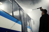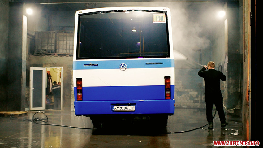 Спочатку звичне очищення зовні мийними засобами та водою, після цього обробка салону з хімікатами - таку дезінфекцію проходять усі транспорті засоби Житомирського ТТУ. Обробляють салони працівники підприємства, для них спеціально придбали захисні костюми, рукавички та маски.