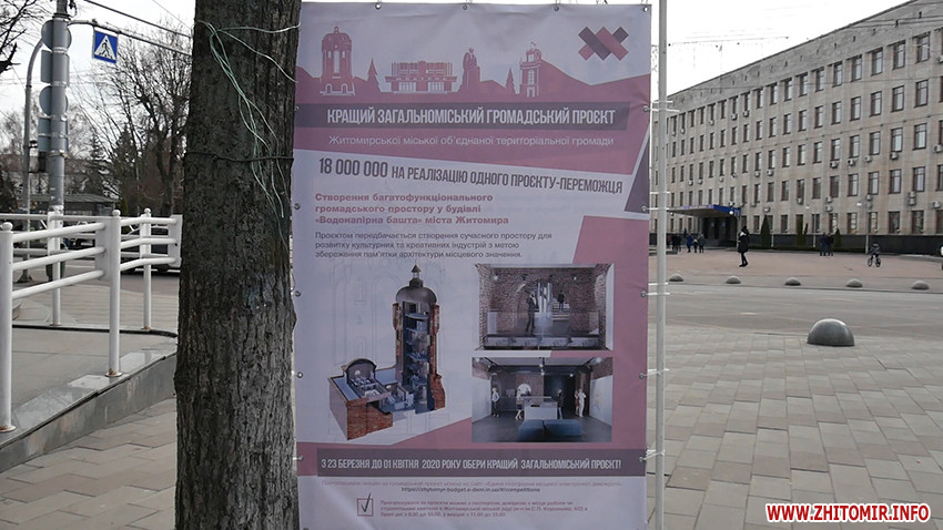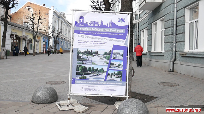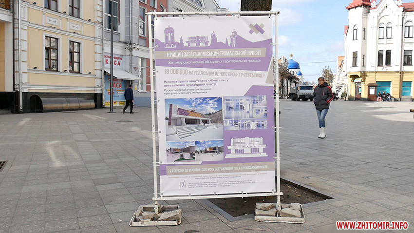 Як повідомляв Житомир.info, наприкінці березня житомиряни зможуть проголосувати за кращий проєкт громадського простору: кінотеатр, бульвар чи вежу.