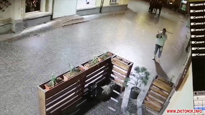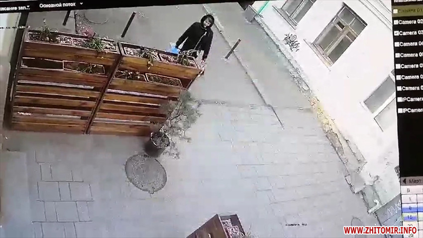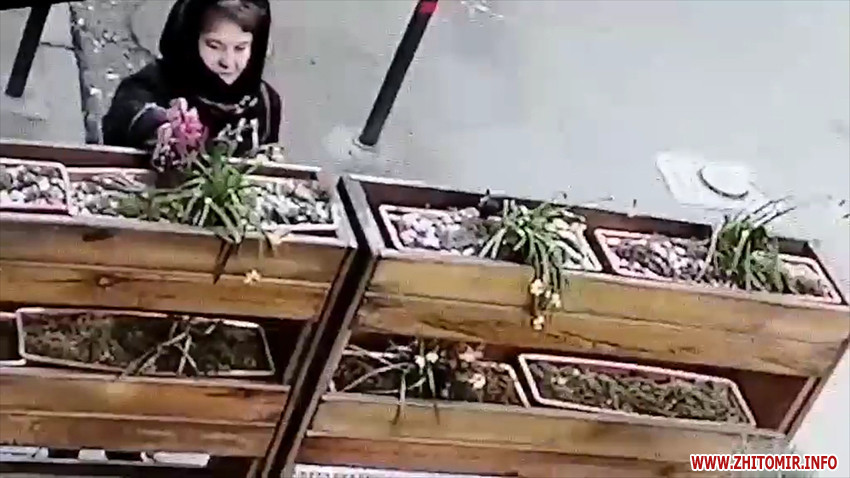 У центрі Житомира біля крамниці-кав’ярні «Львівська майстерня шоколаду» черговий раз перехожі вкрали квіти. Жінка спершу пройшла повз дерев’яну огорожу, яку прикрашають квіти в горщиках, зупинилась, подивилась навкруги, зірвала і понюхала пелюстку, а потім і вкрала квіти. Ще один хлопець вкравши квіти, потім повернувся і викинув їх на територію закладу.