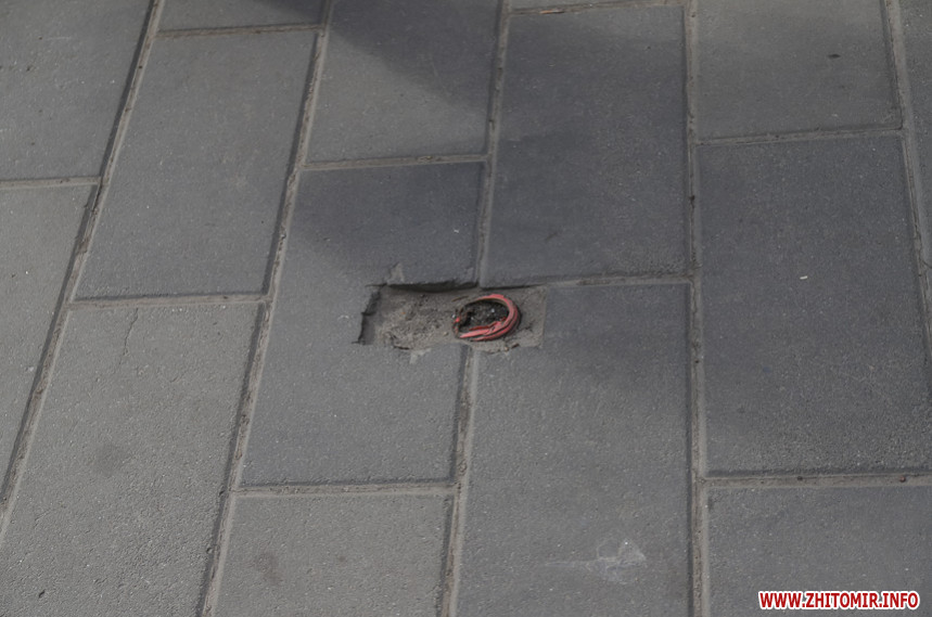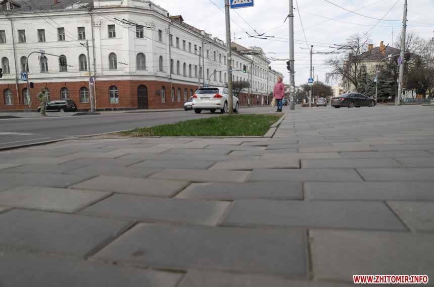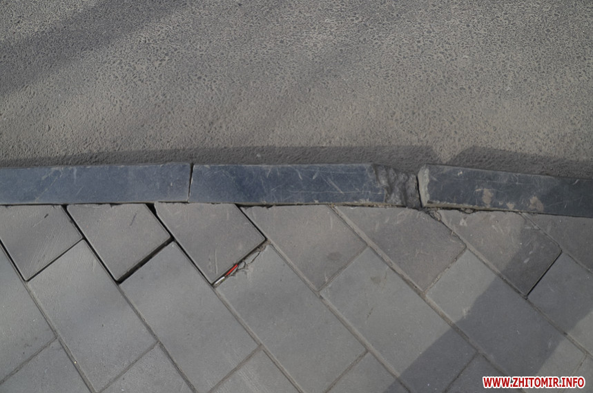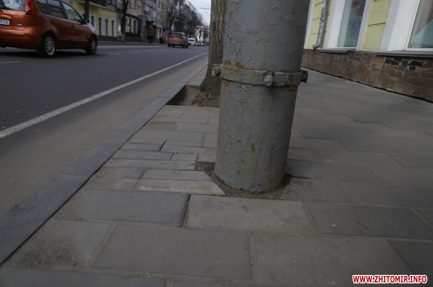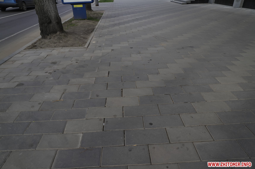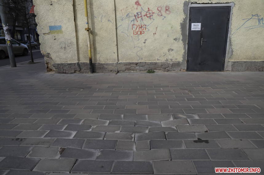 Тротуарна плитка на вулиці Великій Бердичівській, як і на Київській, не надто добре пережили свій ще не довгий вік: просіла, потріскалась, надщербилась.