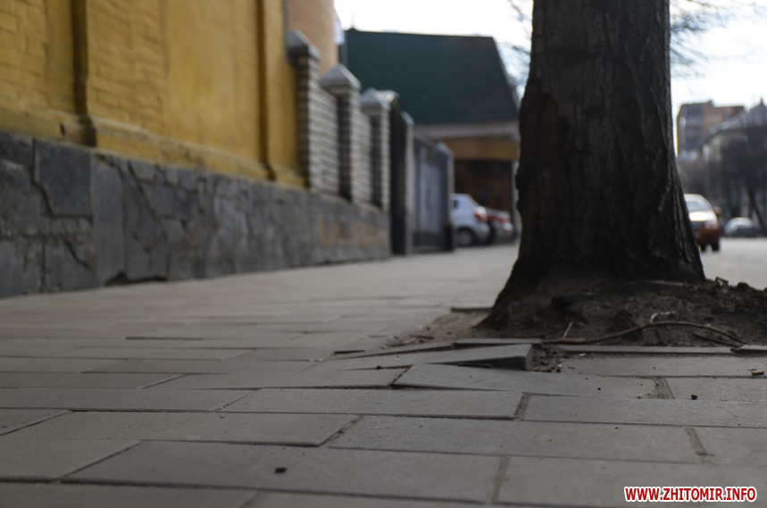 Фото тротуарів у центрі Житомира, зроблені у квітні 2019 року, дивіться тут