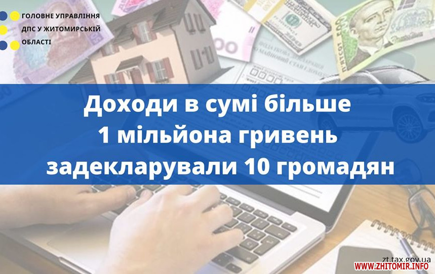 У Житомирській області доходи в сумі більше 1 мільйона гривень задекларували 10 громадян.
