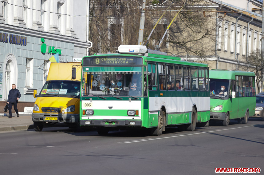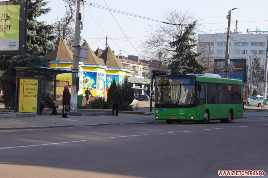 Нагадаємо, 17 березня заступник міського голови Олександр Шевчук під час брифінгу повідомив, 19 березня буде прийнято рішення щодо роботи громадського транспорту в подальшому. Управління транспорту і зв’язку Житомирської міської ради не проводило скорочення руху рухомого транспорту, приміських автобусних маршрутів. На виконання Постанови Кабінету Міністрів від 11.03.2020 року №211 з 18 березня рух автобусних маршрутів № 104, 110, 126 та 147 здійснюється лише у межах міста, №104 та 110 курсуватиме до обласної дитячої лікарні (с. Станишівка).