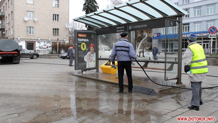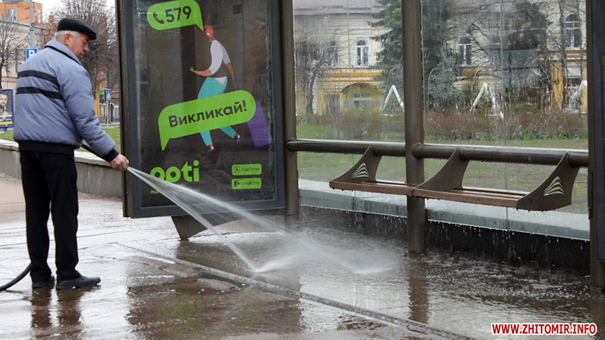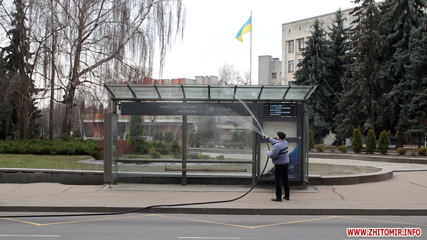 В Житомирі вранці 21 березня розпочали обробку зупинок громадського транспорту. Для дезінфекції задіяні житомирські комунальні підприємства та бригади Державної служби з надзвичайних ситуацій.