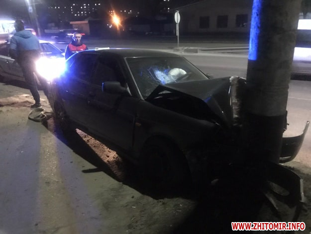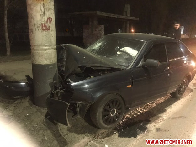 Ввечері 20 березня на проспекті Незалежності у Житомирі автомобіль ВАЗ в’їхав у електроопору.
