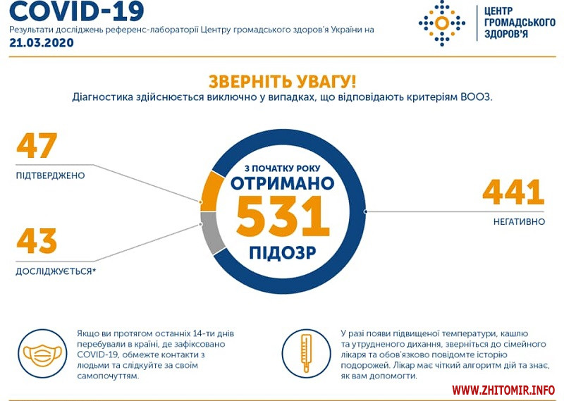 Як повідомляв Житомир.info, станом на 10:00 год. 21 березня 2020 року в Україні був 41 лабораторно підтверджений випадок COVID-19. МОЗ також інформувало про першого пацієнта, який перехворів на коронавірус та одужав.