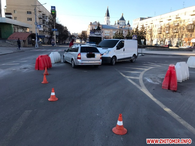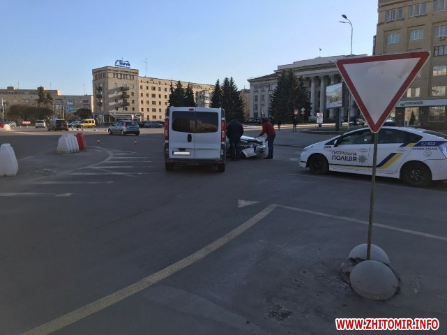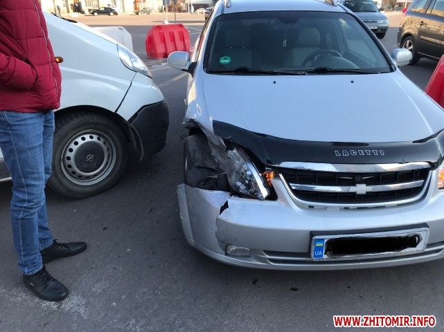 На майдані Соборному у Житомирі 24 березня зіштовхнулись Chevrolet та Opel. У ДТП ніхто не постраждав.