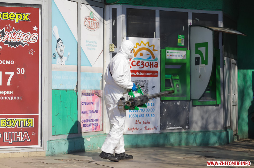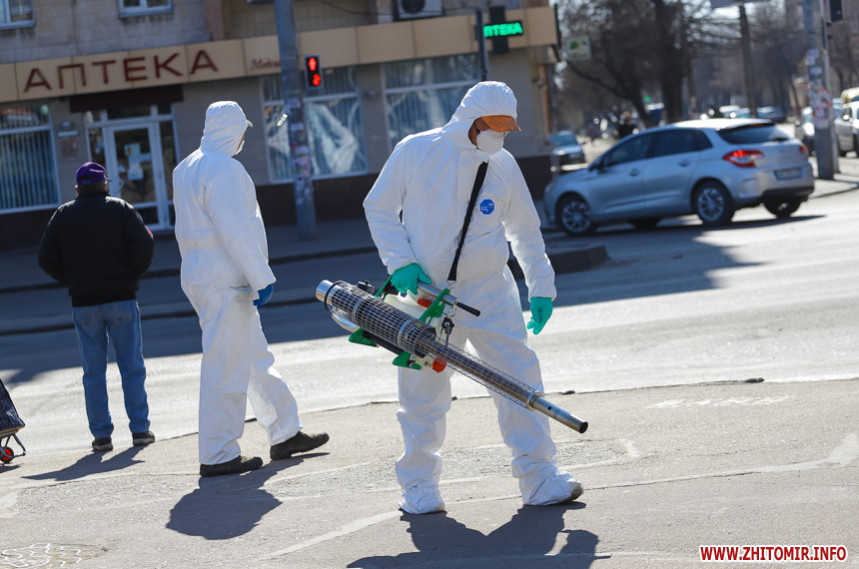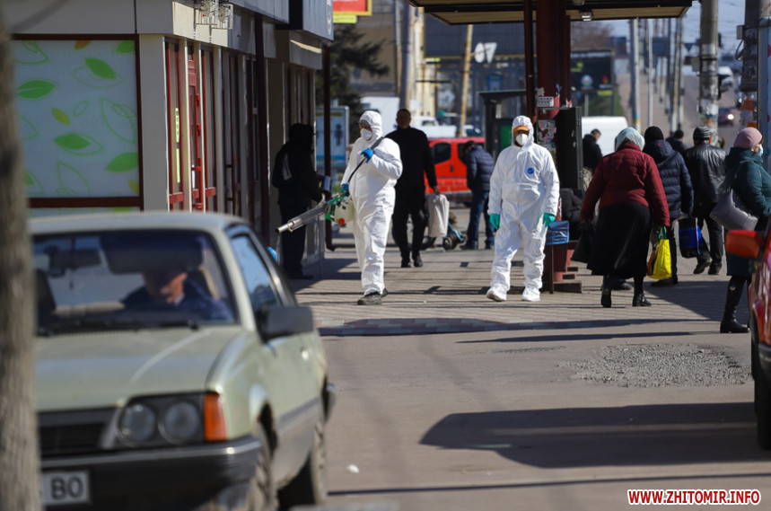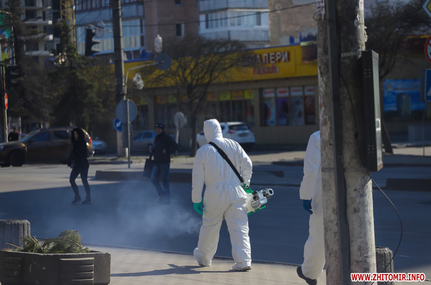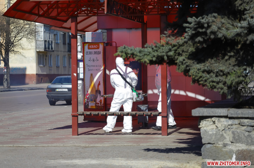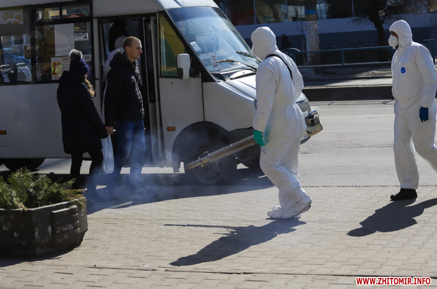 Як повідомляв Житомир.info, на позачерговому засіданні виконкому 20 березня мер Житомира Сергій Сухомлин повідомив, що з суботи, 21 березня, у Житомирі розпочнуть дезінфікувати вулиці та зупинки громадського транспорту. Проводити такі заходи, за потреби, планують і на спортивних майданчиках.
