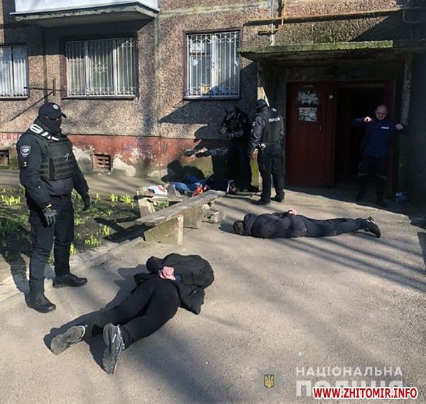 «По обіді 25 березня на вулиці обласного центру оперативники карного розшуку Житомирського відділу спільно з ТОРівцями управління патрульної поліції провели блискавичне затримання трьох житомирян, підозрюваних у низці злочинів», – йдеться у повідомленні.