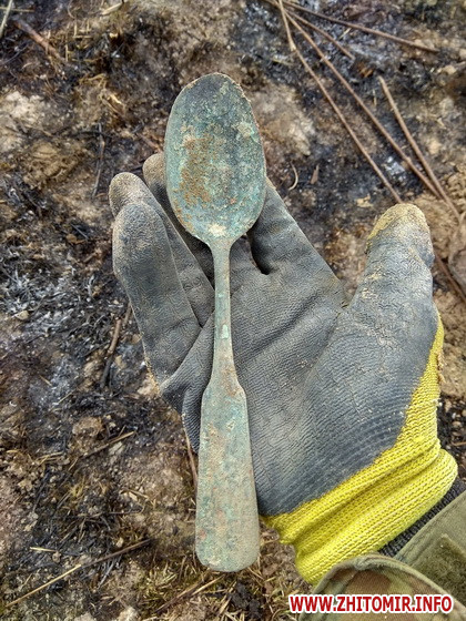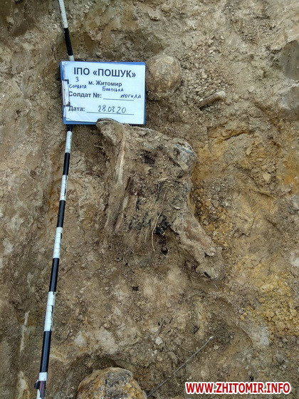 «28 березня наша група проводила пошукові роботи в Пулинському районі. Майже одразу вдалося знайти солдата РСЧА в окопі глибиною більше метра. Ґрунт — суцільна глина... При воїні була каска СШ-39 та військове спорядження. Агресивна земля за 79 років зробила кістки дуже крихкими. Також в окопі було знайдено 2 гільзи від пістолета Парабелум, що може свідчити про те, що солдата «добили» на місці... Нажаль воїн залишиться невідомим. Трохи згодом неподалік було знайдено могилу, в якій знаходились залишки 3-х солдатів РСЧА, а точніше від них залишилися лише ноги, одна рука, один цілий череп і декілька фрагментів другого... Густе коріння кущів просто з'їло кістки, які лежали нижче в землі... Також в ямі було знайдено протигаз, дві каски СШ-39, заряди до німецької ракетниці (саме від них така рожева земля), ємність для зубного порошку, ложки, а найголовніше — смертний медальйон! Солдати будуть поховані разом, так як розділити їх залишки було неможливо. Маємо надію встановити ім'я одного з солдатів, який лежав у ямі», - повідомили пошуковці.