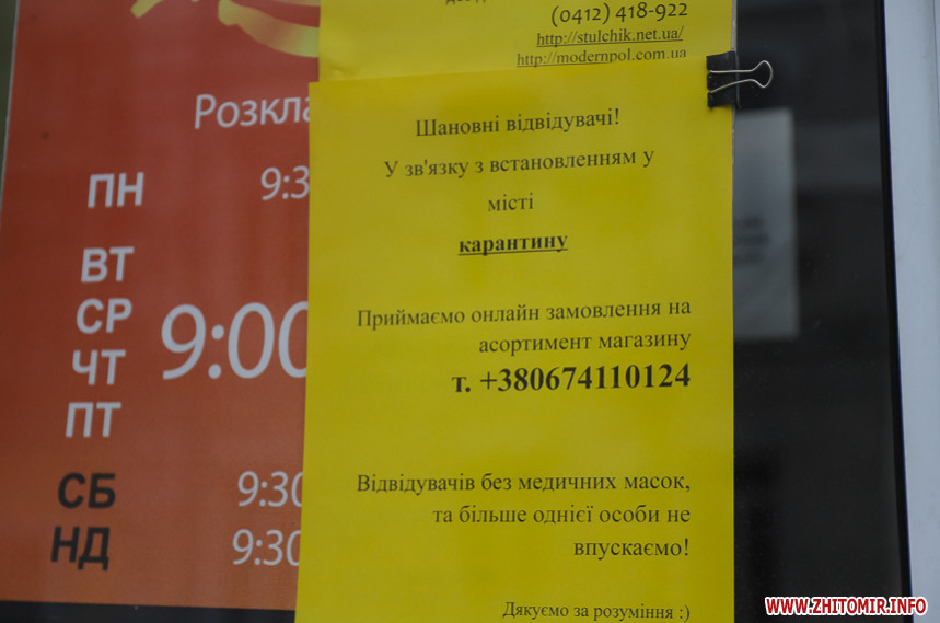 Як житомирян попереджають про обмеження в роботі аптек і магазинів, дивіться у фоторепортажі від 23 березня 2020 року
