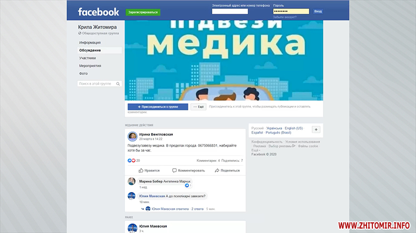 У Житомирі волонтери допомагають дістатись до роботи медикам, які працюють у місцевих лікарнях, але живуть в інших районах області. Для цього містяни створили спільноту у Facebook, в якій водії та медики розміщують оголошення й домовляються про поїздку. Один з таких волонтерів - житомирянин Олександр. Він пропонує безкоштовний підвіз у будь-який час.