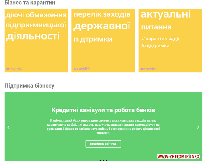 На сайті вже доступна інформація про діючі обмеження для малого та середнього бізнесу з метою протидії поширенню захворювання COVID-19, перелік заходів державної підтримки, а саме: