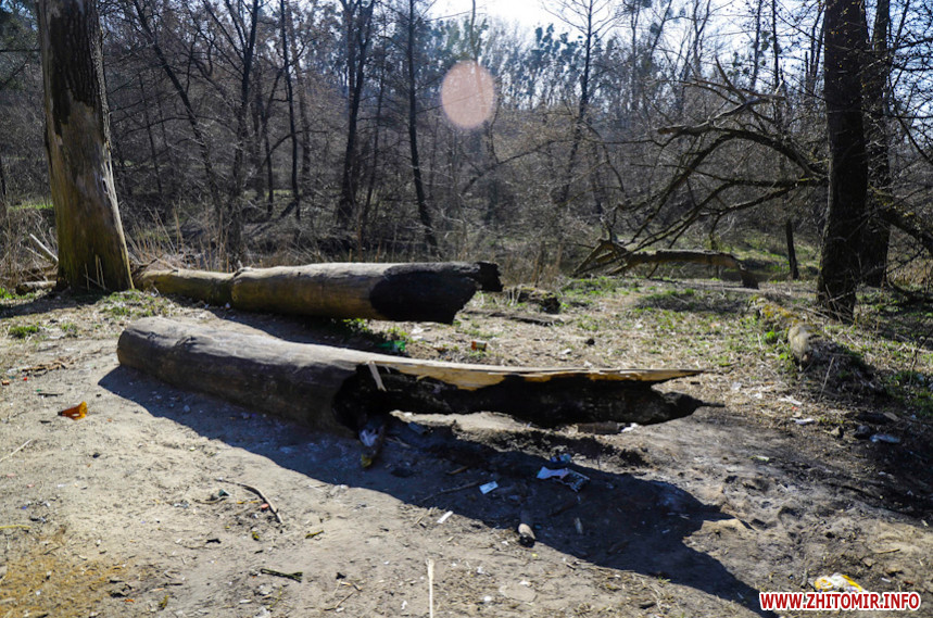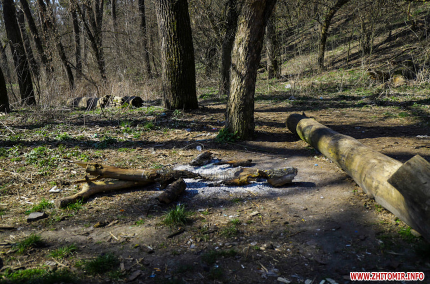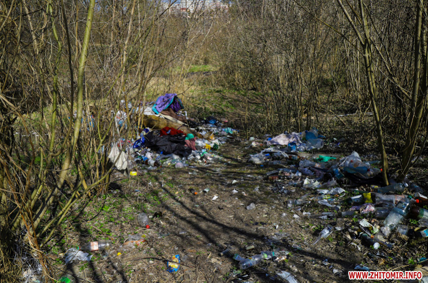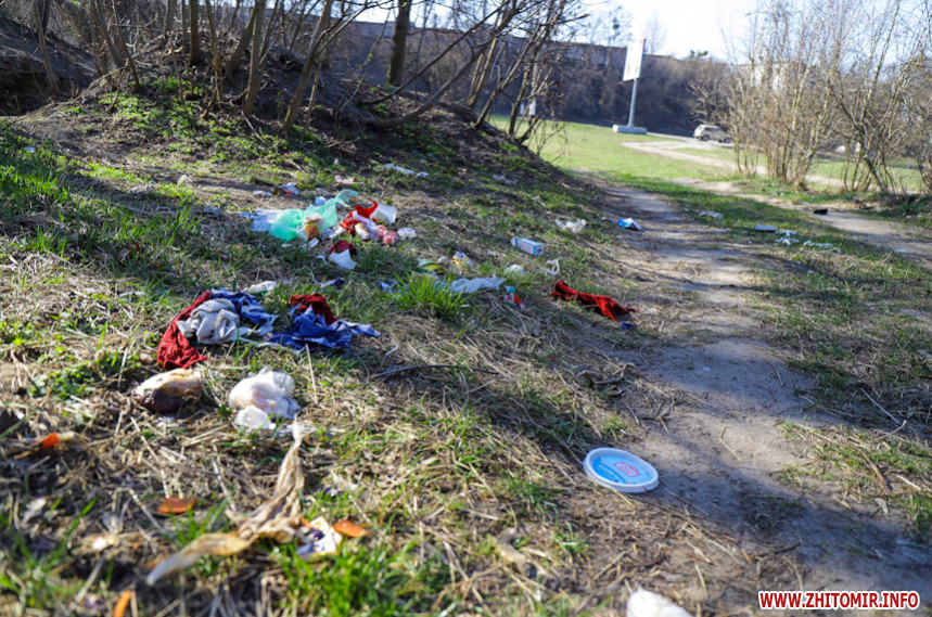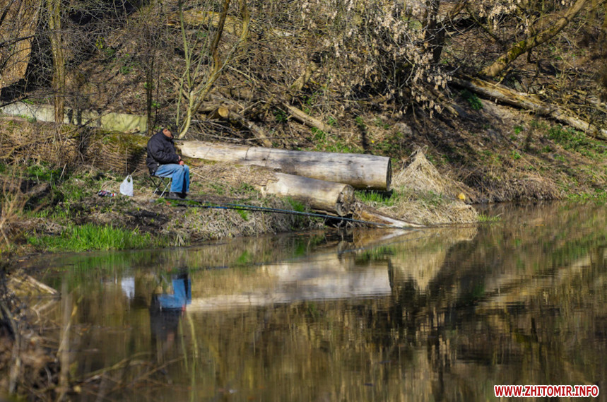 «З 9-ї ранку до 1-ї години дня людей тут дуже мало: на пальцях однієї руки можна порахувати. Серед них рибалка та кілька тих, хто вигулює собак. Проте гори сміття та свіжі місця від багать і згарища вказують, що тут часто збираються компанії відпочивальників-порушників карантинного режиму», – розповідає фотокореспондентка Житомир.info, яка 2 квітня робила знімки біля річки Кам'янка.