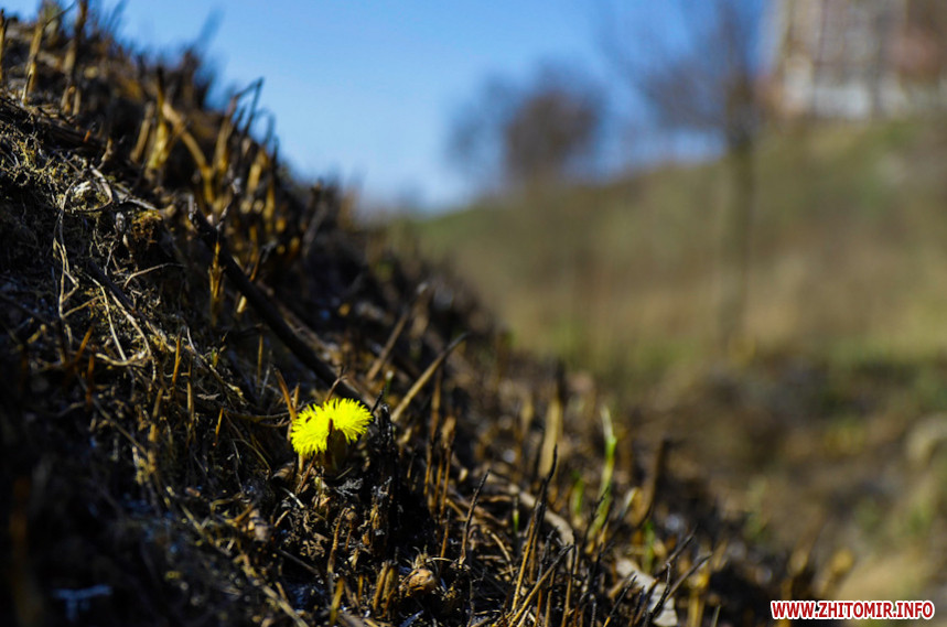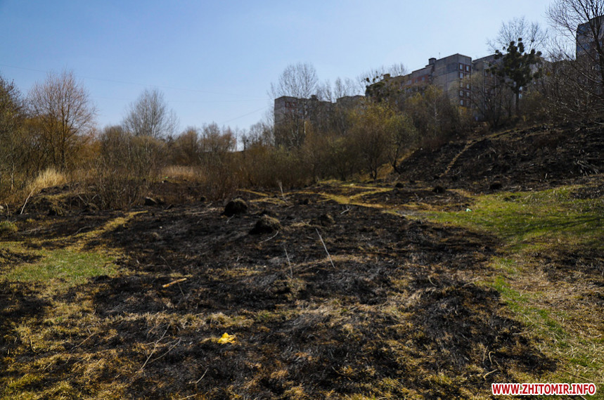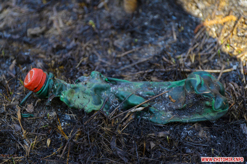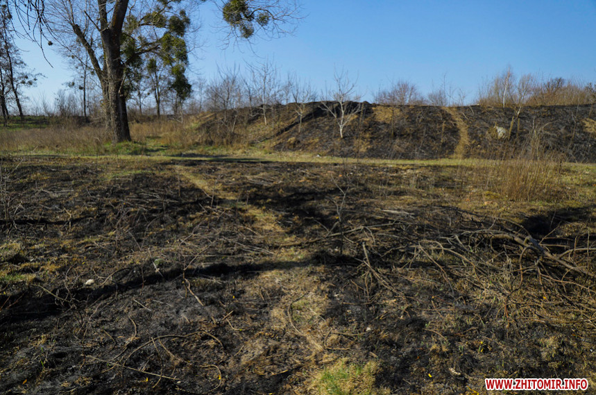 Гори сміття та випалена трава на тлі весняного пробудження природи – те, що зустрічає охочих пройтися вздовж Кам'янки у Житомирі.